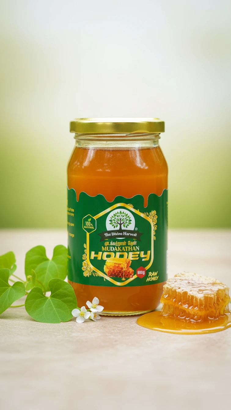 ✔ 100% Natural & Pure – Harvested from bees that forage on Mudakathan Keerai flowers, ensuring a natural infusion of herbal benefits.