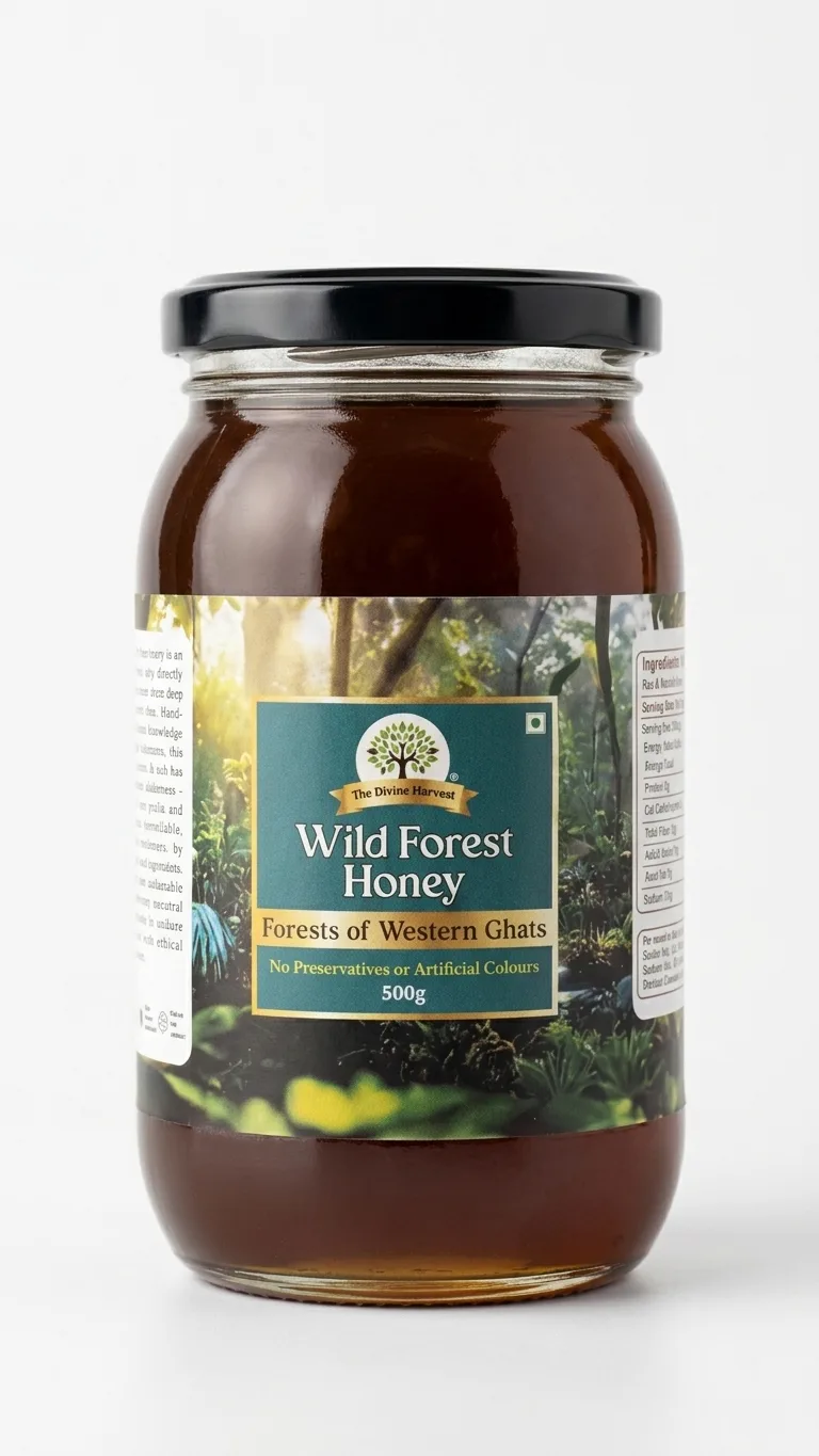Wild Forest Honey is pure, unprocessed honey harvested from deep forest regions by indigenous tribal communities using traditional and ethical methods. Sourced from a wide diversity of wild forest flowers, it retains its natural enzymes, pollen, antioxidants, vitamins, and minerals that are often destroyed during processing. Its rich aroma, earthy flavor, and natural texture truly reflect the untouched biodiversity of the jungle. Free from additives, heating, and filtration, this honey delivers nature in its most authentic form.